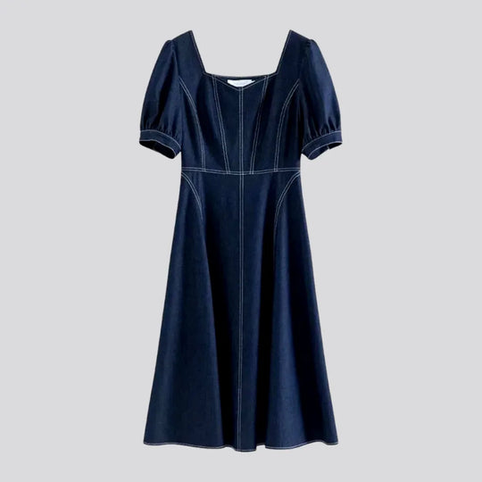 Elastic midi casual jeans dress
